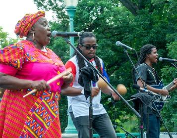la música; durante su participación en la Glorieta del Parque Roger Williams de Providence. Los garífunas son un grupo étnico descendiente de africanos y aborígenes caribes, además