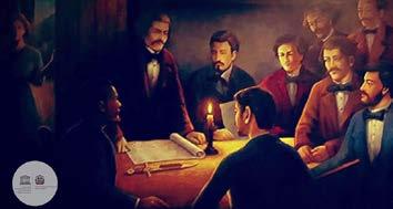 Ya despachada la procesión, y marchado los feligreses, llega el silencio, y Duarte sentado a la mesa con los demás compañeros, los arenga en bajo tono, como inicio de la reunión para alimentarles el ego independentista y entre otras cosas les dice: la sociedad se llamará “La Trinitaria” por tres razones: se compondría de tres grupos de tres personas cada uno.
