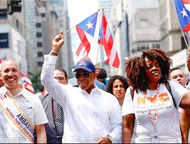 mientras columnas de confeti rojo, blanco y azul volaban por el aire. Música, cultura y alegría sirvió como tema de este año, que honró a los pioneros que han dejado una huella cultural en los Estados Unidos. Los homenajeados incluyeron a la Gran Mariscal Giselle Blondet, la Reina Justina Machado de 2023 y más. El alcalde Eric Adams, la gobernadora Kathy Hochul, el comisionado del Departamento de Policía de Nueva York, Keechant Sewell, la comisionada del Departamento de Policía de Nueva York, Laura Kavanagh, y una gran cantidad de miembros del Concejo Municipal también marcharon bajo el sol abrasador.