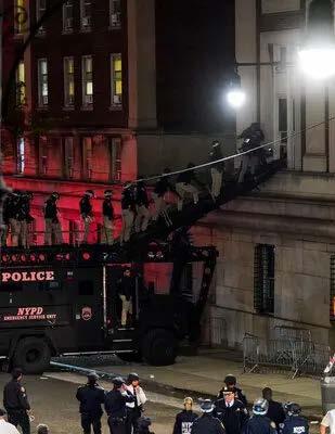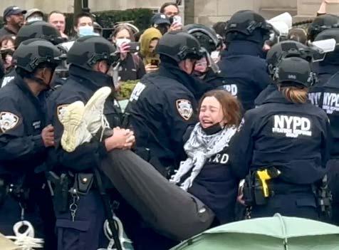 La policía de la ciudad de Nueva York es llamada al campus de Columbia para disolver el campamento de protesta pro palestino y arrestar a más de 100 manifestantes. Entre los detenidos se encuentra la hija de la representante demócrata estadounidense Ilhan Omar, quien un día antes había interrogado a Shafik sobre el trato que la escuela daba a los manifestantes pro palestinos.