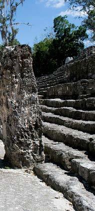 Estela situada en la base de la Estructura III. Por el gran número de estelas encontradas en Calakmul, se le considera el depósito más grande de textos dinásticos mayas. Fuente: Wikipedia