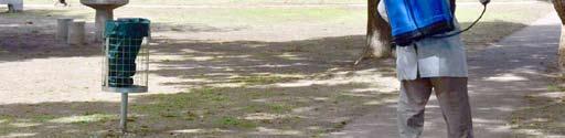de fumigación y limpieza en distintas plazas o espacios con gran circulación de gente en El Parque, Bosques Norte, Presidente Perón, La Esmeralda, Santa Inés, Villa Argentina, Villa Cirio, San Eduardo, 9 de Julio, La Carolina, Ingeniero Allan, Ricardo Rojas, San Jorge, Libertad, Infico, El Rocío, Luján, La Capilla, Villa Angélica,