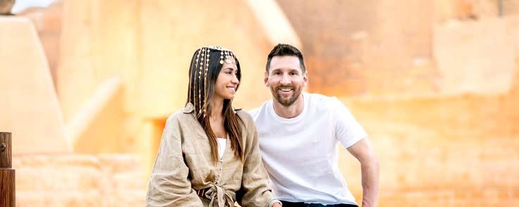 Lionel Messi junto a su esposa, en una de las imágenes que registra su paso por Medio Oriente