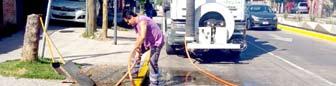 reparación de una importante cañería distribuidora de agua potable de 450mm de diámetro en la intersección de venida Mosconi y Lafinur,
