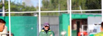 El entrenador Mario Sciacqua probó a Gabriel Díaz como mediocampista central, mientras aguarda por la recuperacion de Martín Río, en la práctica de fútbol realizada este jueves en el campo auxiliar.