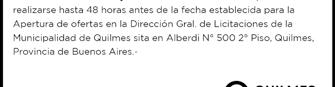 El Juzgado Civil y Comercial n°6 de Quilmes, cita y emplaza por treinta dias a herederos y acreedores de SUMICH, ANGEL TOMAS ._Quilmes, a la fecha de la firma digital de la presente.- MASSONE Gabriela Sandra. SECRETARIO. El presente edicto debe publicarse por el término de tres días en el diario "EL SOL" DE QUILMES". Quilmes, a la fecha de la firma digital de la ElSol-presente. 21.v17.08Bolsa de Trabajo SE OFRECE SEÑORA CON RETIRO limpieza, ayudante de cocina, planchado, limpieza y cuidado de abuelos y niños, por hora o retiro. Obdulia 1141651975 SE OFRECE SEÑORA para limpieza, planchado, ayudante de cocina, cuidado de niños y abuelos, con retiro o por hora. 1141651975