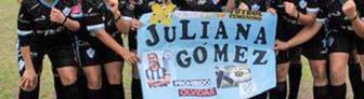 Las jugadoras de Argentino posaron con un cartel por Juliana