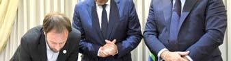 La firma de Pablo López junto a Sergio Massa y a Sergio Díaz Granados SOCIEDAD ministro de Desarrollo Social, Juan Zabaleta; el titular del INDEC, Marco Lavagna; la titular de AySA, Malena Galmarini y autoridades del CAF.