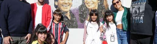 En el espacio también se concretó un mural con la técnica de mosaiquismo que tiene las imágenes de Diego Armando Maradona y de Cristina Fernández de Kirchner.
