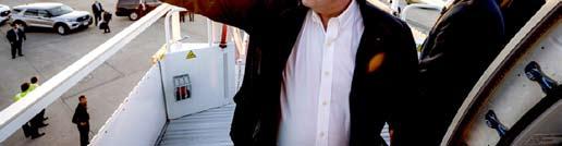 El Primer Mandatario argentino al subir al avión que lo trasladó a los Estados Unidos