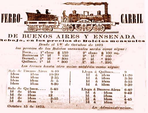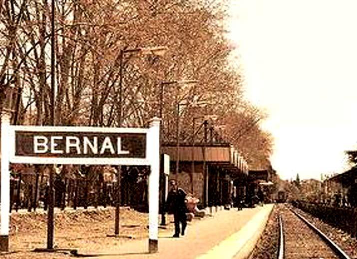 1872. Ya figura en el aviso del periódico en lengua inglesa "The Standard", del 17 de abril, la estación Bernal como parada del recorrido del ferrocarril de Paseo de Julio a la Ensenada, inaugurado en Quilmes al día siguiente, el 18 de abril.
