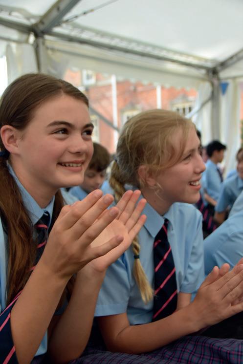 enthusiasm! They even find the time to teach Latin and French amazingly as well. I have been lucky enough to have been on Mr Inglis’s lunch table and he is such good value and a great conversationalist – even though sometimes his assembly stories make Mr Attwood start tapping his watch! I am so impressed that Mrs Inglis stands outside every morning in all weathers greeting pupils as they come in, always with a huge smile and some helpful words such as ‘tuck your shirt in’ and ‘have you brushed your hair’. Thank you also to Mr Attwood for all the myriad of things he masterminds. He has just put together an amazing Leavers’ Programme for us. He even organised that there was a heatwave for our trip to Wales so we were able to enjoy the most brilliant weather by the sea. Thank you also to every single teacher here, the matrons, gappers, kitchen staff and groundsmen. A special mention to Mrs Goodbourn who has been my form teacher twice.