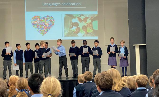 In September we kicked off Languages Week with a record number of postcards sent from exciting places visited over the summer. Our assembly celebrated all languages as well as different traditions and diverse cultures. 6PAS did a brilliant presentation to the whole school which was followed by our House competition which included a flag quiz and a guess the teacher’s language challenge for Years 5 to 8. Years 3 and 4 also took part in the European food quiz. We were treated to a fabulous lunch including currywurst sausages, vegetarian Glamorgan sausages, una salata de castraveti, french fries and a delicious Naples’ ice cream sundae.