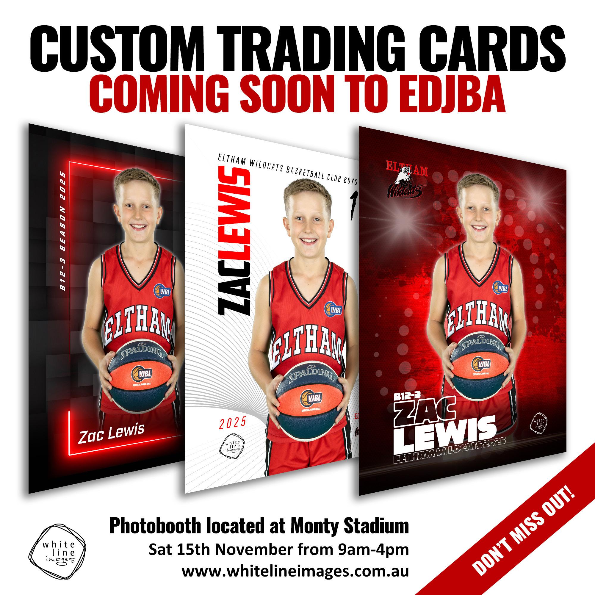 Calling all EDJBA players! The ultimate in sports collectibles is now within reach for all of our Wildcats players thanks to White Line Images. Get down to Monty Stadium on 15th November and secure your custom trading cards in time for Christmas. Choose your design, have your photo taken and White Line Images will personalise your own set of trading cards, just like the pros! Starting from just $20 for a pack of 4 cards, complete with a free display case!