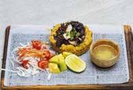 Los platos típicos de la auténtica mesa dominicana son: el mangú, la bandera nacional (arroz blanco, habichuelas rojas y algún tipo de carne), sancocho (un caldo espeso con siete variedades de carnes y diversos tubérculos), yaniqueque y pescado frito estilo Boca Chica. Thetypical dishes that can be found in the authentic dominican tableare:mangú(apureeofgreenplantain),the nationalflag(whiterice,redbeansandanytype ofmeat),sancocho(aheartysoupwithseven differenttypeofmeatandvegetables),Johnny’s Cakes,oryaniquequeandBocaChicaStylefriedfish.