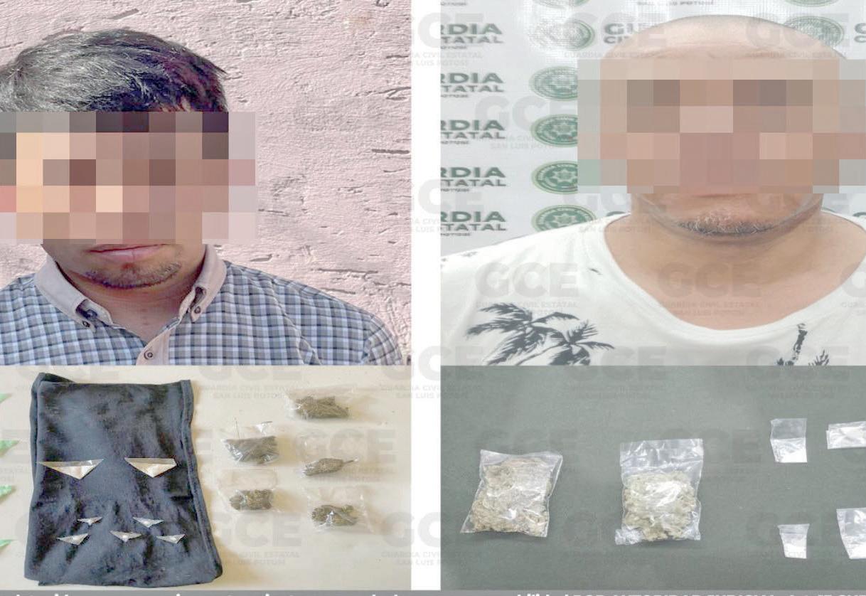Operativos de seguridad, guiados por las labores de inteligencia que desarrolla la unidad de análisis de la Guardia Civil Estatal (GCE), permitieron la captura de dos presuntos vendedores de droga, uno de ellos en la capital potosina y otro más en el municipio de Venado. En la zona metropolitana, agentes de la GCE detuvieron a Juan “N” de 42 años de edad, sobre la colonia Morales, ahí fue detectado con siete dosis de “cristal” y dos bolsas con marihuana, confeccionadas para su posible venta individual, lo que derivó a su aseguramiento.