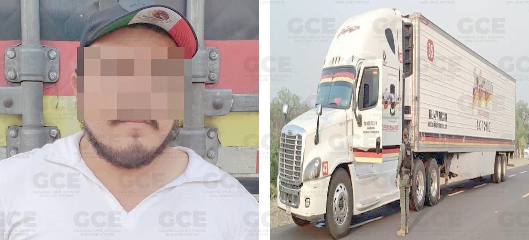 El tractocamión con reporte de robo se trasladaba sobre la carretera estatal 75-D y fue interceptado a la altura del kilómetro 42, en las inmediaciones del municipio de Rioverde.