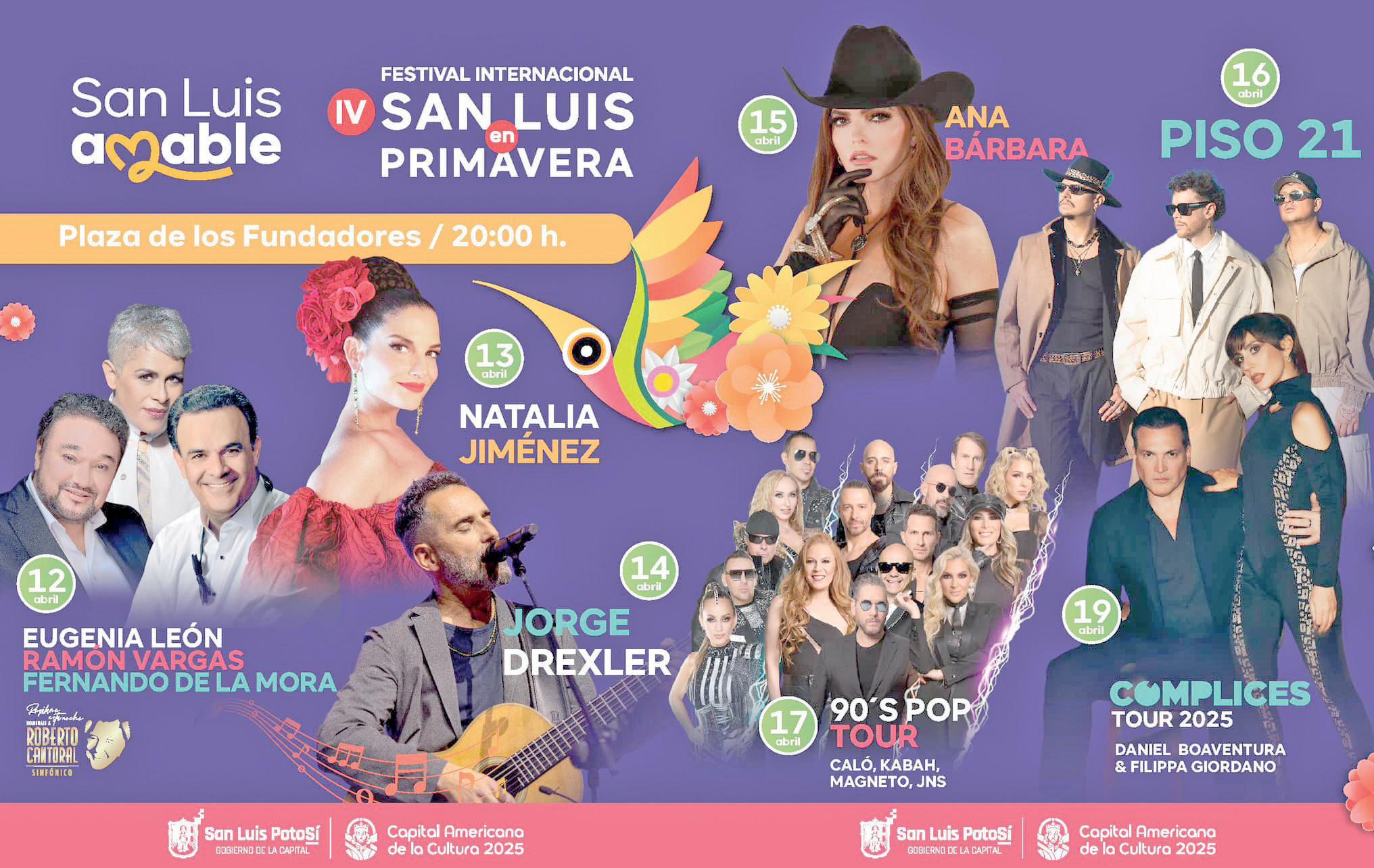 P.D.3.- Si no tienen a dónde ir en las próximas vacaciones, vengan a la zona metropolitana de San Luis Potosí. Eventos hay de a montón: deportivos, culturales, religiosos, recorrido por los siete bares, la Feria de la Enchilada en Soledad, el Festival San Luis en Primavera, la Procesión de los Cristos en Villa de Pozos, el torneo nacional de tenis infantil y juvenil, la Copa Potosí de fútbol. Una cosa es segura, se la van a pasar de rechupete.