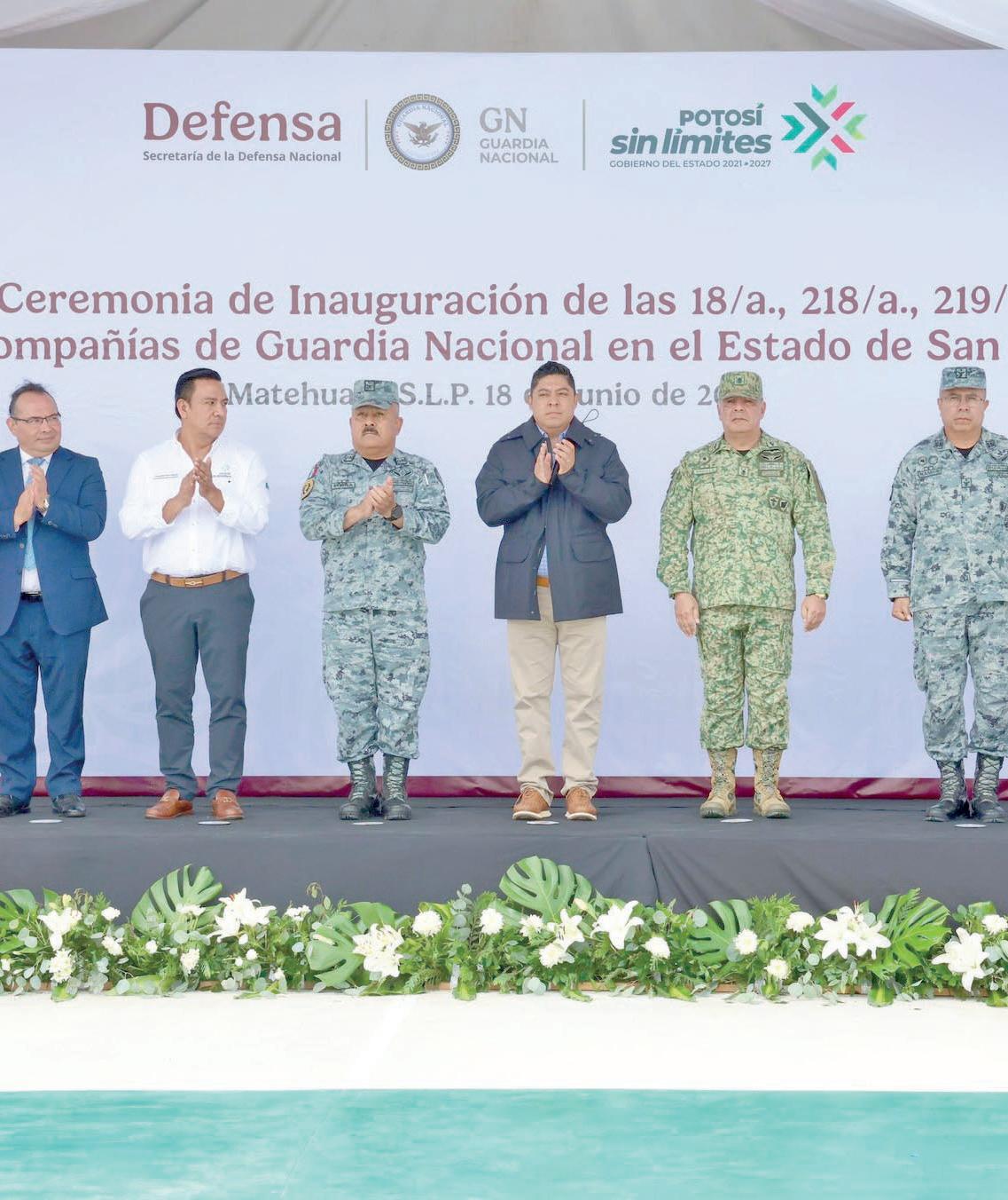 oportuna a situaciones de emergencia. Como parte del fortalecimiento a la estrategia de seguridad del Altiplano, el miércoles 18 de junio fue inaugurada la nueva base operativa de la Guardia Nacional en el municipio de Matehuala. El gobernador Ricardo Gallardo Cardona encabezó el evento, acompañado de mandos militares, autoridades estatales y municipales, marcando un paso clave en la lucha contra la inseguridad y la delincuencia organizada. La instalación fue equipada con dormitorios, oficinas, sala de mando y áreas de entrenamiento, y su puesta en marcha permitió mejorar los tiempos de respuesta ante emergencias, así como aumentar los patrullajes preventivos. Esta base se integró a una estrategia estatal más amplia, que contempla la construcción de más cuarteles y el fortalecimiento de la cooperación interinstitucional entre corporaciones de seguridad. Con estas acciones, el Gobierno de San Luis Potosí reafirmó su compromiso con la protección de las y los ciudadanos.
