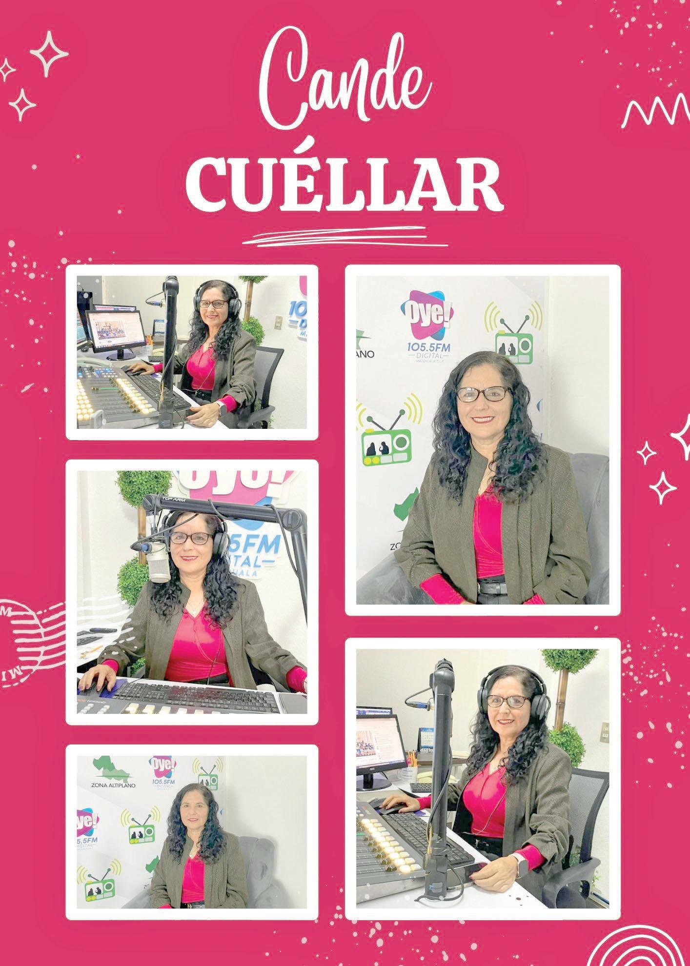 La historia de Cande Cuéllar es la de una mujer perseverante que, a través del tiempo, ha consolidado una carrera sólida en los medios de comunicación y en el ámbito deportivo. Su voz es ampliamente reconocida por los oyentes de Oye 105.5 FM, estación que tiene cobertura en todo el Altiplano potosino y llega a otras regiones de México y Estados Unidos a través de su plataforma en línea.