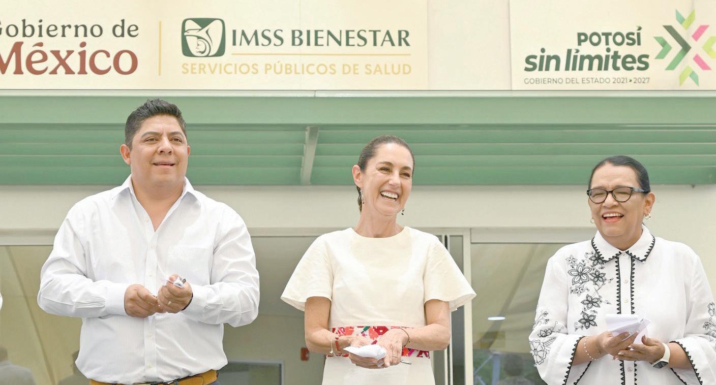 Acompañada por el gobernador Ricardo Gallardo Cardona y funcionarios federales del sector salud y energía, Sheinbaum visitó primero el Hospital General de Rioverde, donde fueron inauguradas las nuevas áreas de imagenología, laboratorio clínico y unidad de hemodiálisis. En el evento, la mandataria reafirmó su compromiso con la Cuarta Transformación y con el fortalecimiento del sistema de salud pública bajo el modelo IMSSBienestar.