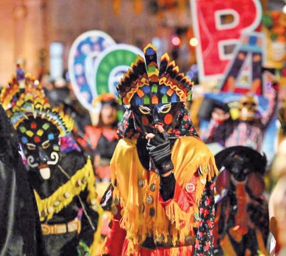 El elemento festivo central son las cuadrillas de danzantes enmascarados, conocidos como “huehues” (ancianos). Sus bailes, al ritmo del son huasteco, sirven para entretener a las ánimas y para “jugar” con la muerte, ocultando la identidad de los vivos tras las máscaras.