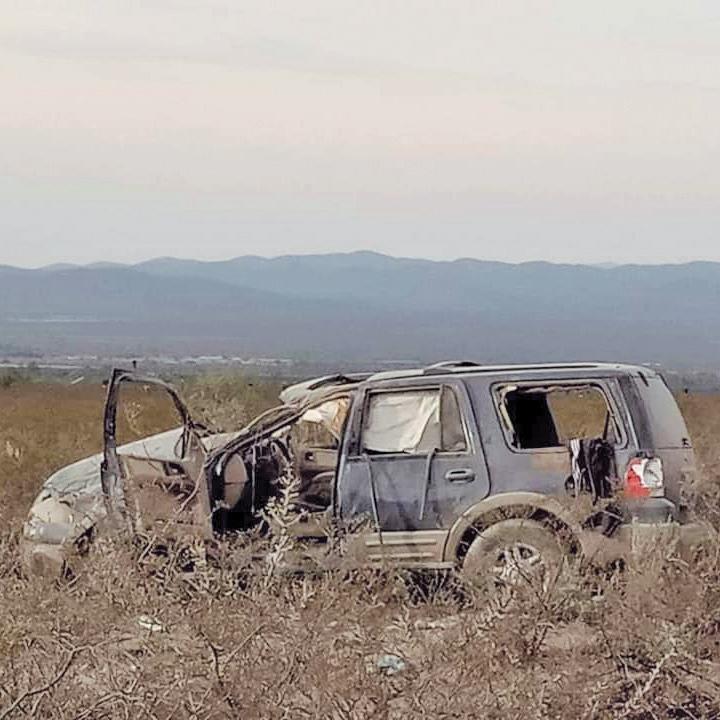 La camioneta quedó totalmente destrozada, el parabrisas y cristales de las ventanas se encontraban regados por varias partes, posiblemente rotos por los impactos al dar volteretas y por la expulsión que sufrieron