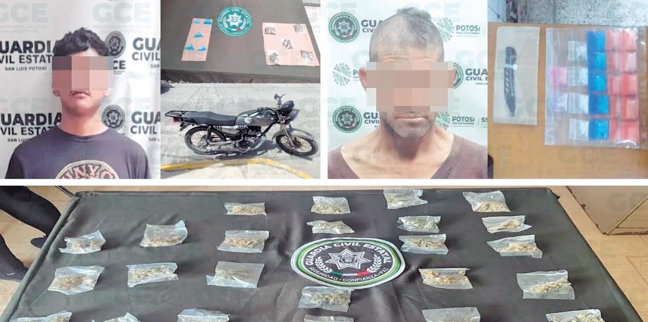 de la detención de tres probables narcomenudistas en diferentes municipios del estado potosino. Una de las acciones tuvo lugar en la comunidad de Pozuelos, donde oficiales estatales daban seguimien -