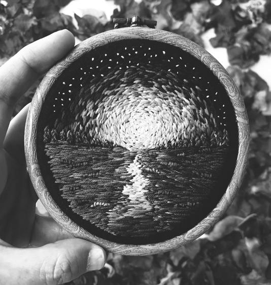 “Me gusta trabajar con hilos y un bastidor en blanco con los que puedo jugar a crear mundos imaginarios. Mi inspiración la encuentro en la naturaleza y la geometría sagrada. La playa es uno de mis espacios preferidos, es donde a través de sus elementos y colorimetría encuentro gran inspiración.”
