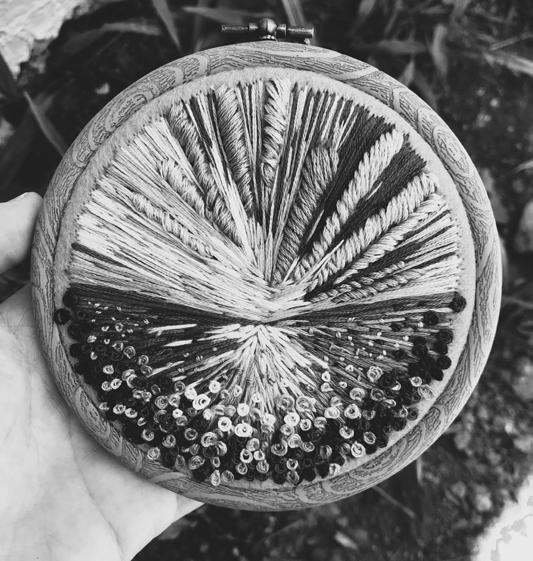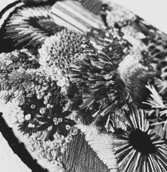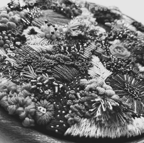 “Mi técnica favorita de bordado, es un tipo de bordado abstracto, en donde en un principio no hay un diseño o un plan, ahí es donde la aguja e hilo se mueven en cualquier dirección dejándole a mis manos hacer su trabajo desde la imaginación Y el corazón"