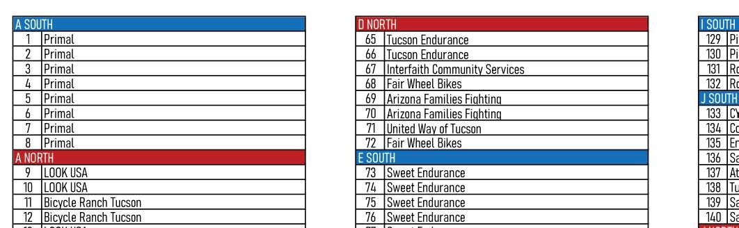 • The 62-Mile Platinum corral closes 15 minutes before start of El Tour de Tucson. BE ON TIME. (This is 8:45 am for the 62-mile Platinum corral)