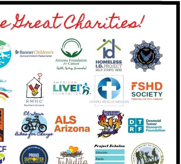 El Tour de Tucson enables nonproÞt, charitable agencies to raise funds for their respective organizations. Last year, our afÞliate charities raised nearly $8 million, moving the overall total to nearly $130 million since El Tour de Tucson started in 1983.