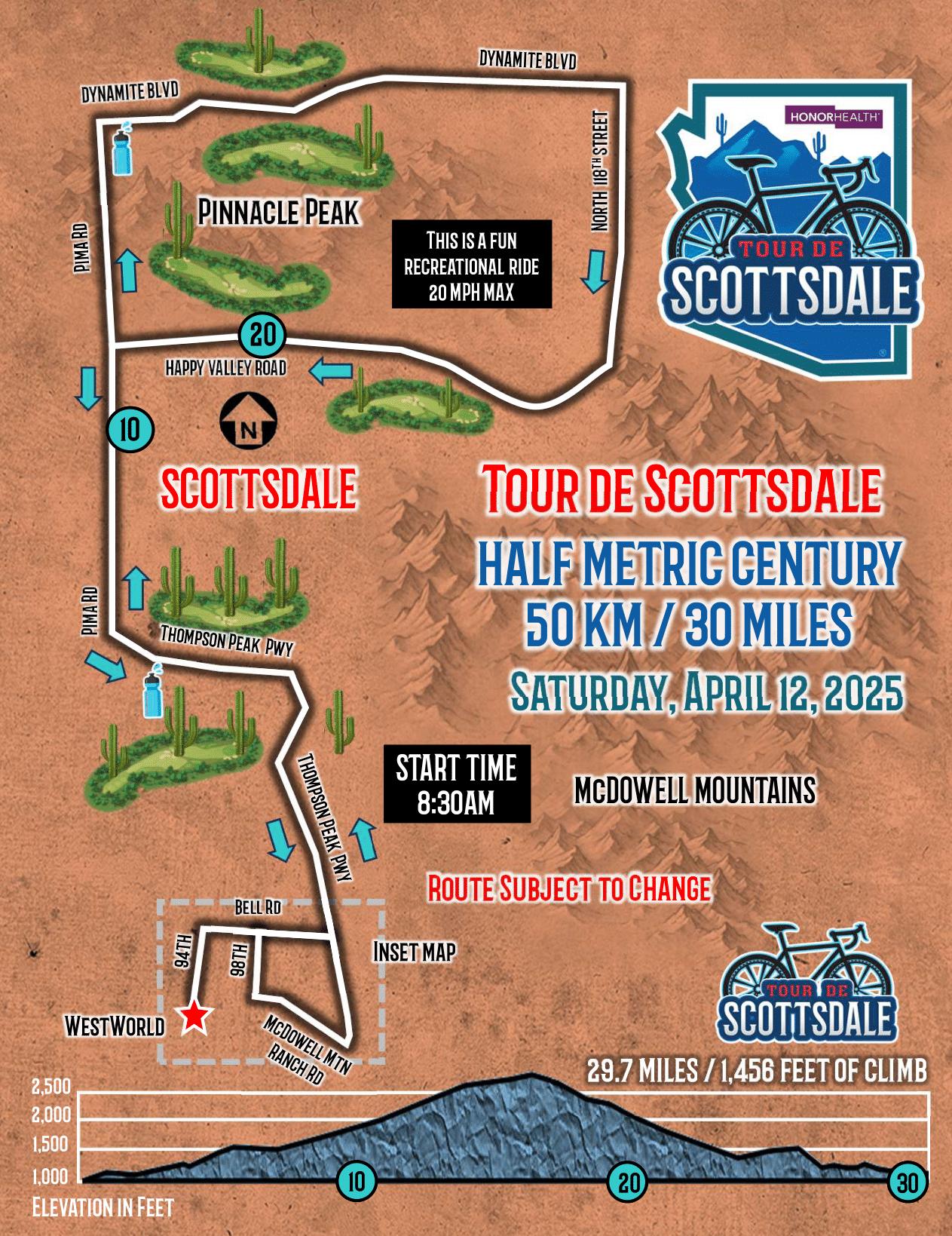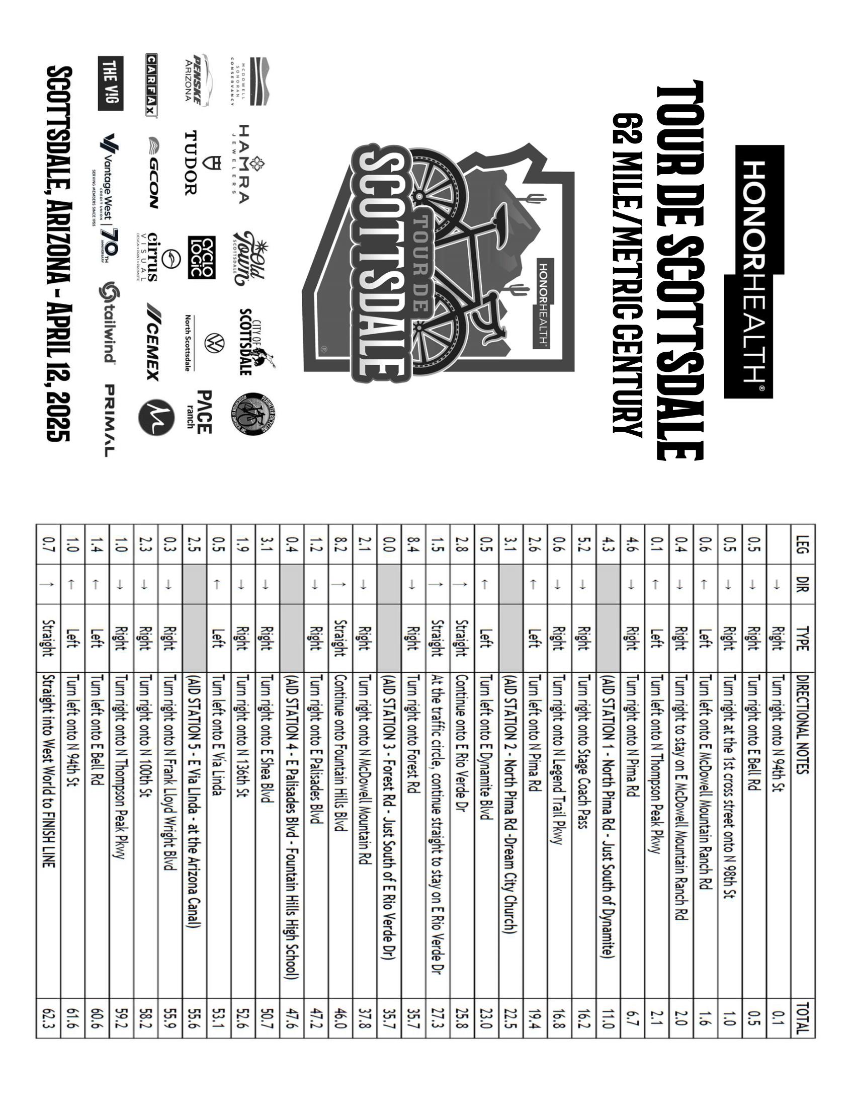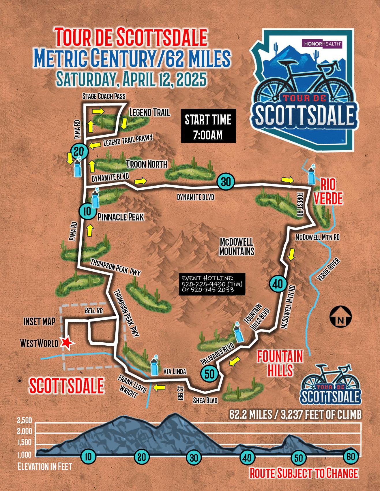 PLEASE UNDERSTAND THAT THE SAFETY OF ALL RIDERS AS WELL AS MOTORISTS IS THE MOST IMPORTANT OBJECTIVE DURING TOUR DE SCOTTSDALE! THERE MAY BE TIMES THAT LAW ENFORCEMENT MAY STOP RIDERS WHEN DEEMED NECESSARY.