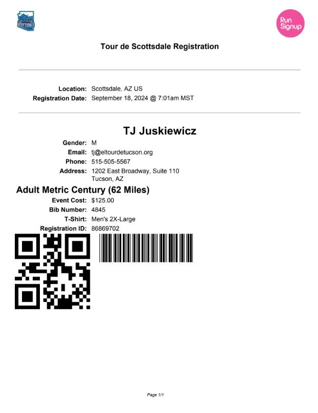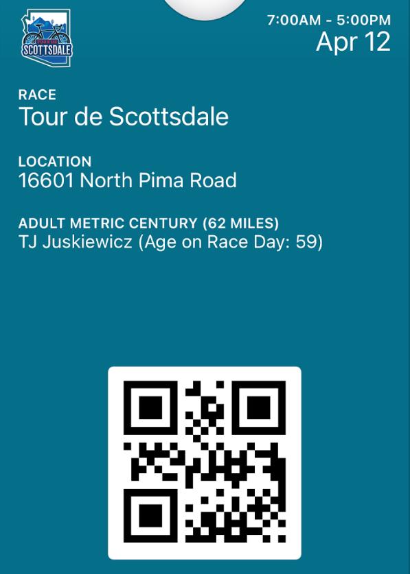 • The Tour de Scottsdale QR Code will also be sent in a reminder email to all registered participants prior to ride week.