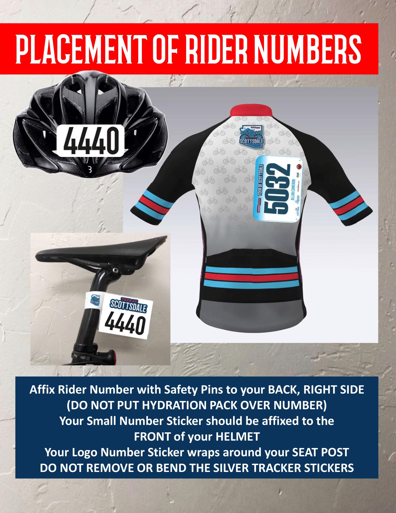 12. All Entrants must wear their rider number on their back, the ride number on their helmet and the seat post ride number on their bike’s seat post.