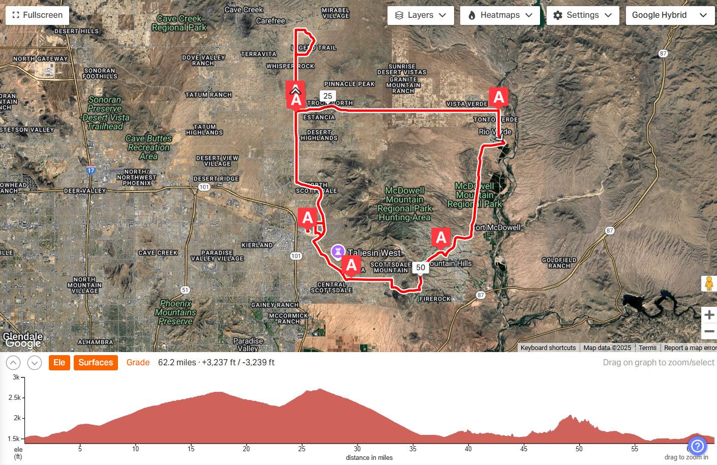 If you want to download any of the Tour de Scottsdale routes to your mobile device (Garmin, Wahoo, Android or Apple devices), visit the Tour de Scottsdale Ride with GPS website at https://ridewithgps.com/routes/49696839 or https://ridewithgps.com/routes/49804707