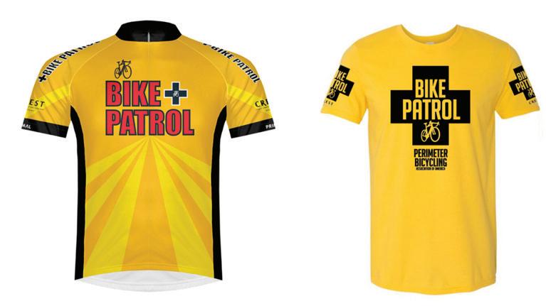 Bike Patrol will be easily recognized wearing bright yellow T-shirts or bright yellow jerseys imprinted with crosses like the images above.
