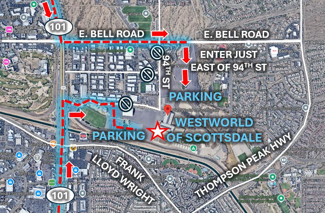 Please use these directions as there are several events that will take place at WestWorld this weekend. These directions will take you to the correct parking lots that are just north of the North Hall at West World of Scottsdale or just West of North Hall.