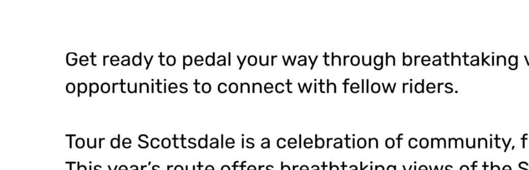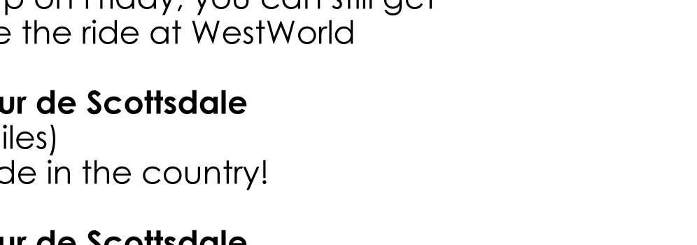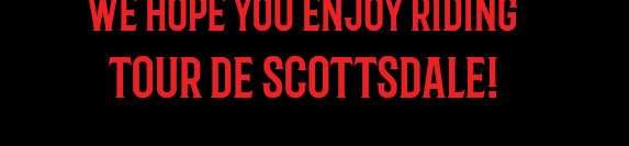 PLEASE UNDERSTAND THAT THE SAFETY OF ALL RIDERS AS WELL AS MOTORISTS IS THE MOST IMPORTANT OBJECTIVE DURING TOUR DE SCOTTSDALE! THERE MAY BE TIMES THAT LAW ENFORCEMENT MAY STOP RIDERS WHEN DEEMED NECESSARY.