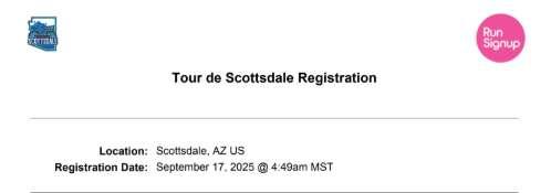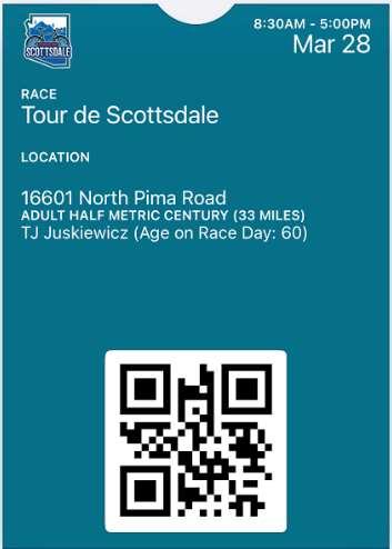 • The Tour de Scottsdale QR Code will also be sent in a reminder email to all registered participants prior to ride week.
