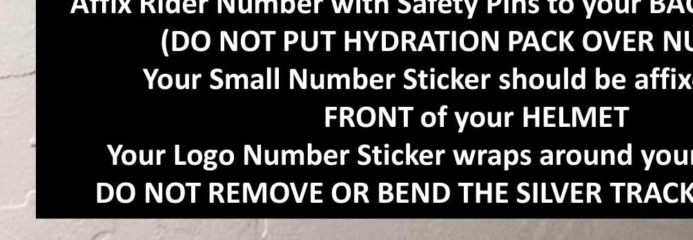12.All Entrants must wear their rider number on their back, the ride number on their helmet and the seat post ride number on their bike’s seat post.