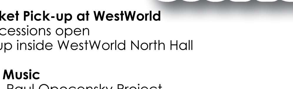 WestWorld’s concession stands will be open to purchase burgers, pizzas, soft drinks, beer and mixed drinks on Friday and Saturday. Coffee and breakfast burritos will be available for purchase Saturday morning before the rides.