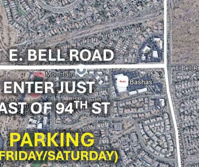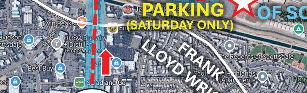North Parking Lot & West Parking Lots are Available (Saturday’s Parking is Paid for by Tour de Scottsdale, cars will be counted)