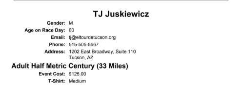 At this point, if you want to change your ride distance (like changing from the 62-Mile to the 32-Mile event) you will need to make those changes at Packet Pick-up.