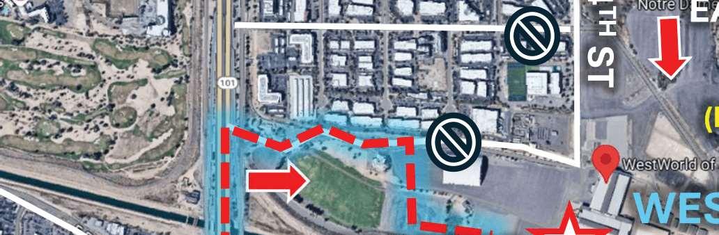 The northbound Pima Road entrance is just north of Frank Lloyd Wright and can be accessed throughout the day. Follow WestWorld signs on SR-101 and you’ll see the Horse statues. This is for Saturday only.