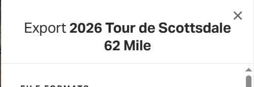 If you want to download any of the Tour de Scottsdale routes to your mobile device, visit the Tour de Scottsdale Ride with GPS website at https://ridewithgps.com/routes/53888621 or https://ridewithgps.com/routes/53888610 to see the routes on Ride with GPS. Click on Send to Mobile App or you can also Send to Device and select iPhone, Android, Garmin or Wahoo on the route you would like information about. Follow the instructions from there.