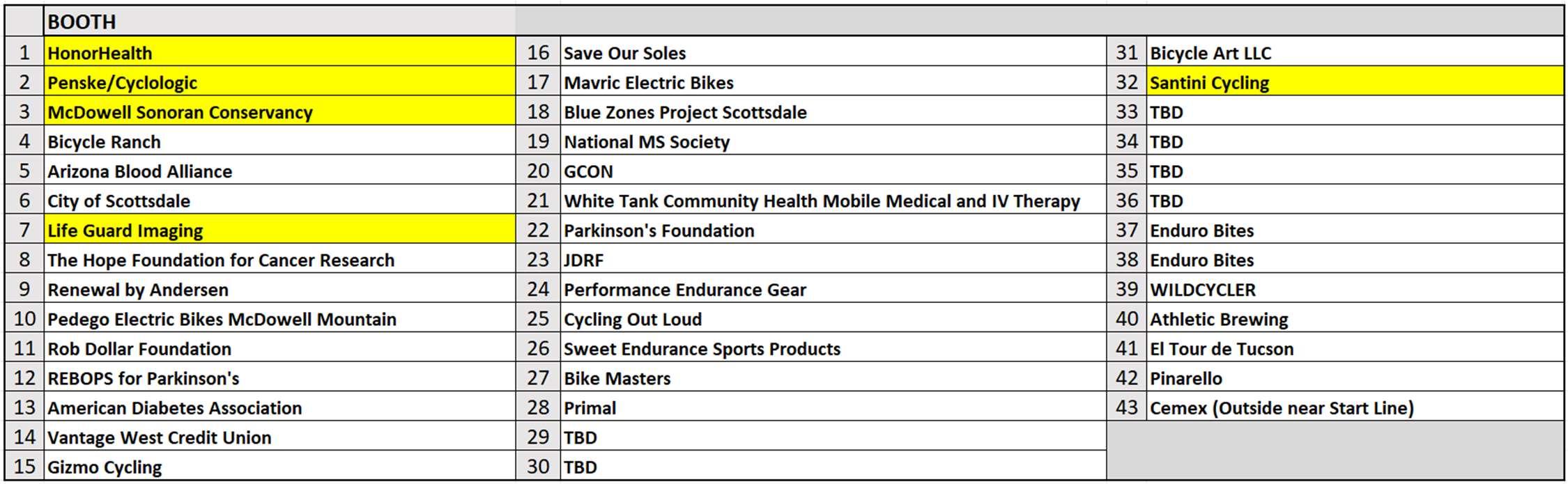 We appreciate your participation in the Tour de Scottsdale Expo. Please review these important details regarding setup and event day procedures.
