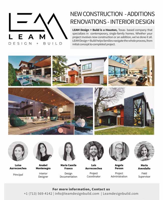 Jhakees Napolitano ayuda a los dueños de negocio con dedicación 05 ¿Casa, local comercial o warehouse? 06 y 07 Consejos para comprar y vender una casa de manera exitosa 10 y 11 Leam Design Build ofrece una experiencia única desde el diseño hasta la construcción de viviendas soñadas 12 Conoce que documentos debes tener para solicitar un préstamo hipotecario 16 ¿Por qué están aumentando tanto las primas de seguros? Descubre las nuevas realidades 18 y 19 Texas recibió más de 500 mil nuevos habitantes 20 Eileen Busato y su pasión por el negocio de bienes raíces 22 Claves de la economía y el diseño en la compra de una propiedad 23 Antes de decorar tu hogar, conoce estos 3 principios básicos 26