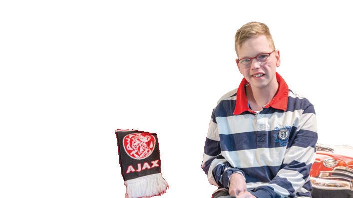 “We zitten vaak buiten met een vuurtje, heel gezellig,” zegt Mark. Hij vindt het fijn om samen te chillen op de bank of in de tuin. Larkin: “Hij houdt van de sfeer hier. Hij voelt zich veilig en fijn.” Ik vraag aan Mark wat zijn favoriete plekje in huis is. Hij wijst naar het comfortabele hoekje van de bank. “En mijn eigen kamer met de iPad”, vertelt hij.