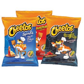 ČIPSI CHEETOS 3 veidi; 165 g vai 145 g 12,67 €/kg vai 14,41 €/kg